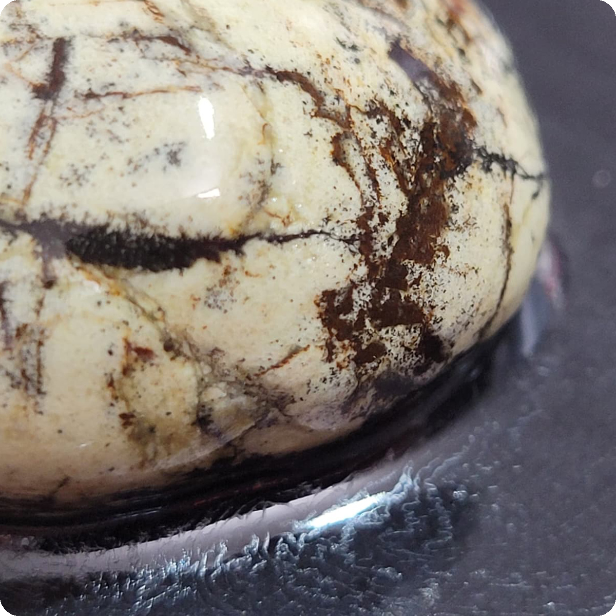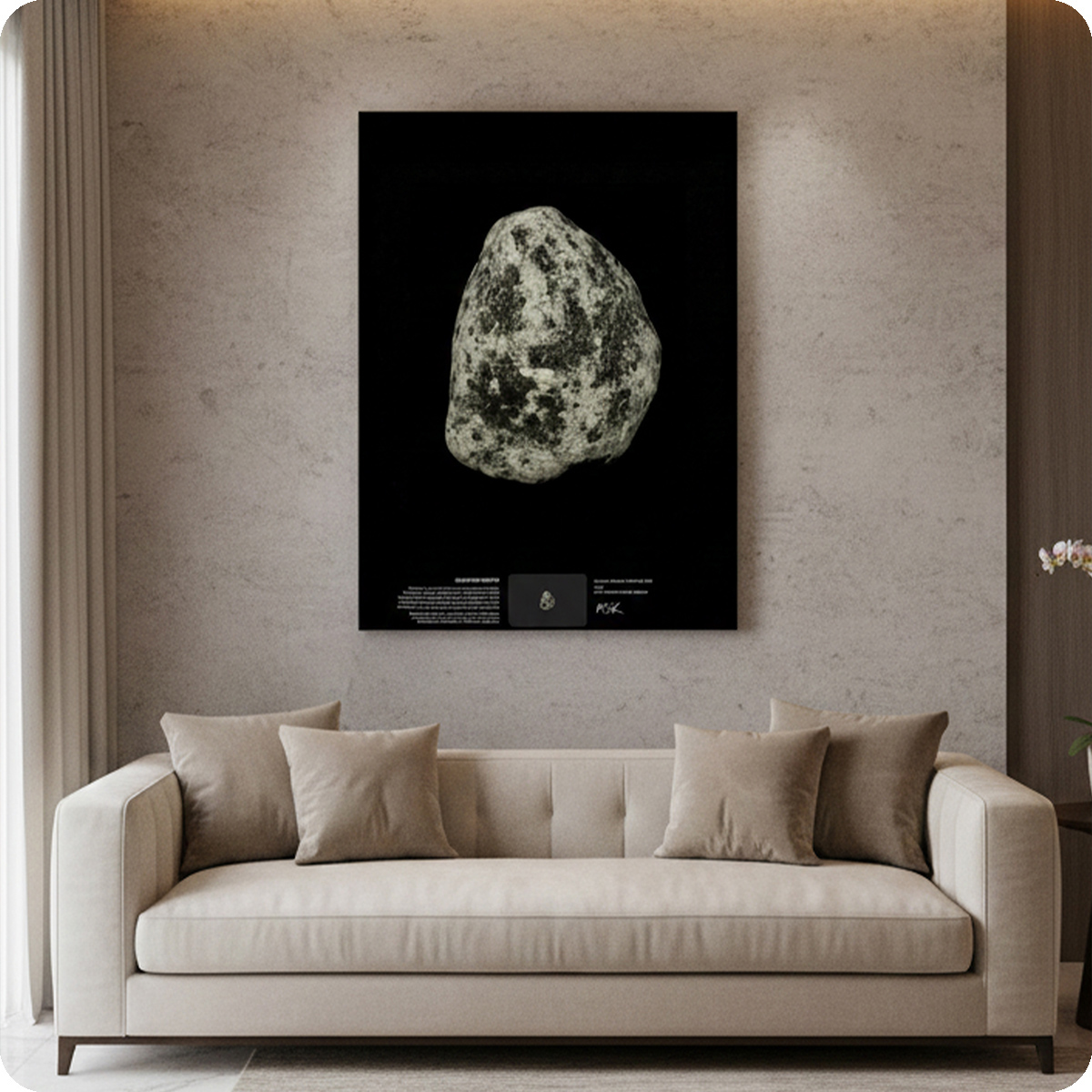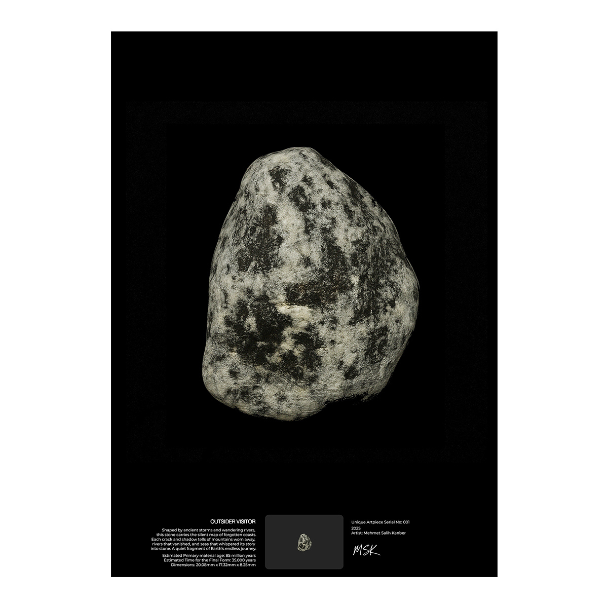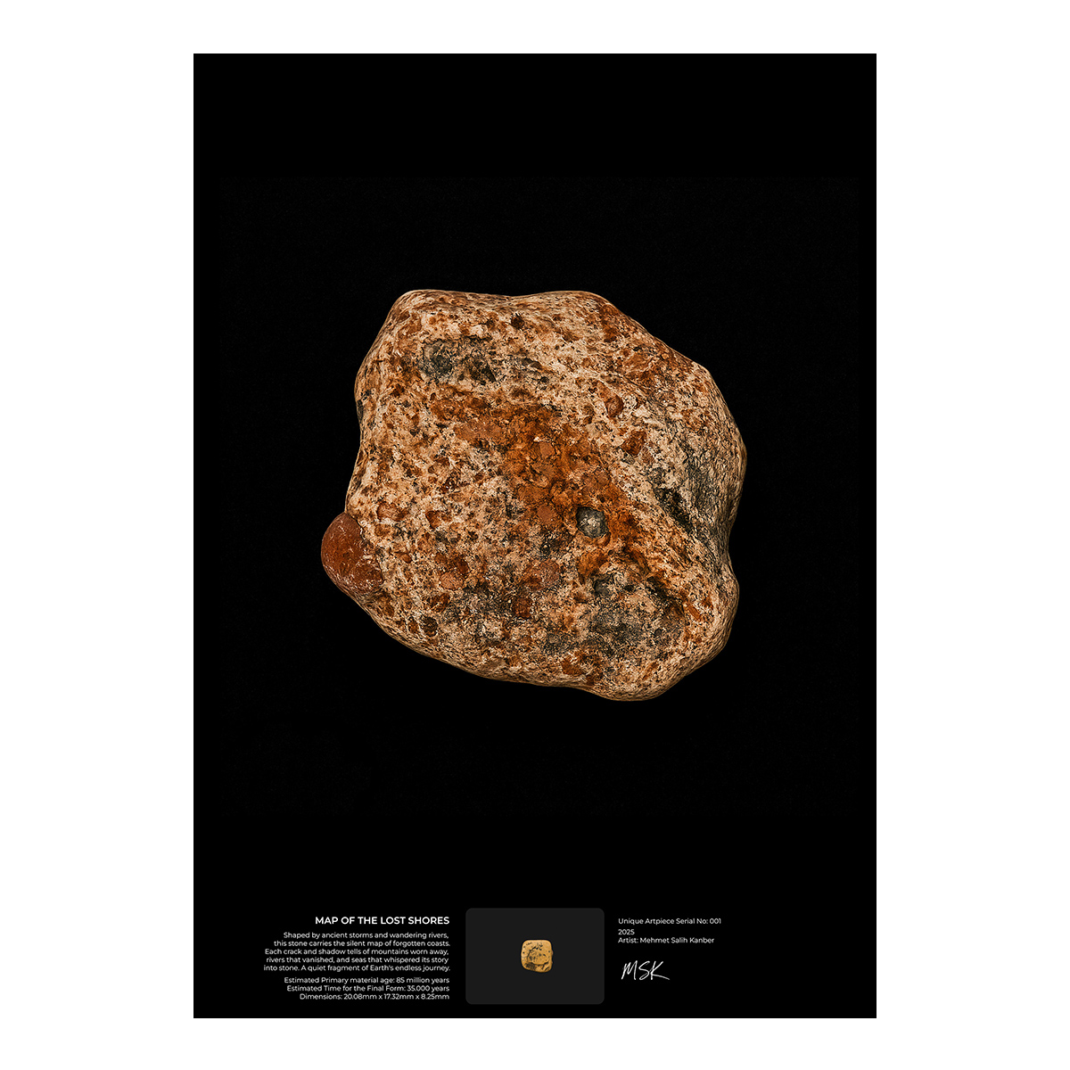 Mediterranean sea stones, macro-photographed by MSK using self-developed techniques, reveal unseen details. Each piece includes the original epoxy-protected stone with its story and signature, unique, irreversible, and shaped by time and choice.