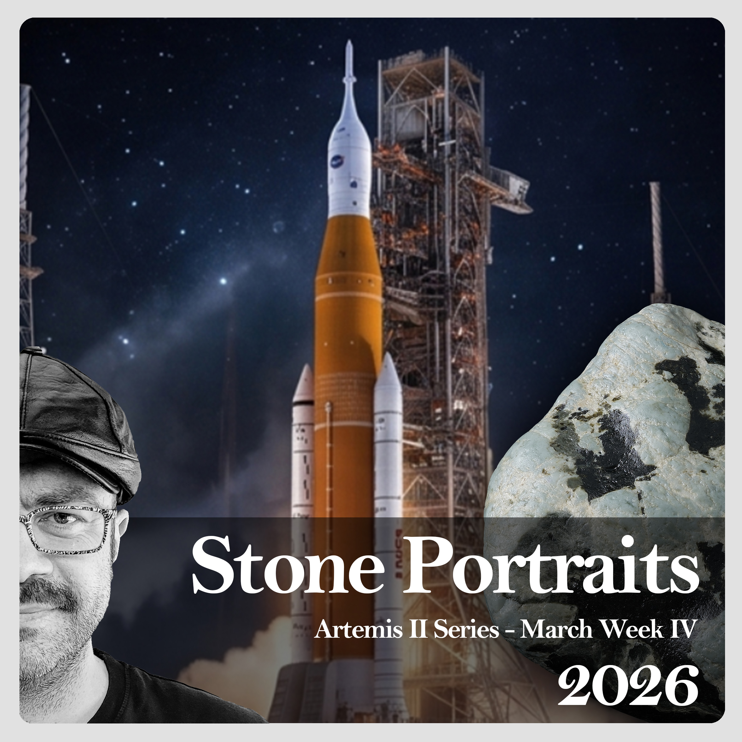 Each series of Stone Portraits consists of four stones, released weekly, named after a significant event of the week and recorded in The Book of Stone Portraits, forming a bridge between deep time and the present. The series is first shared with collectors on the email list.